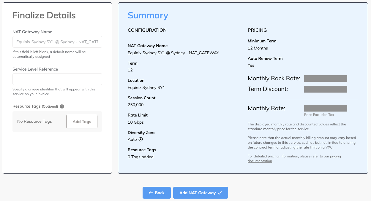 - Click Order Now to order and provision the NAT Gateway.